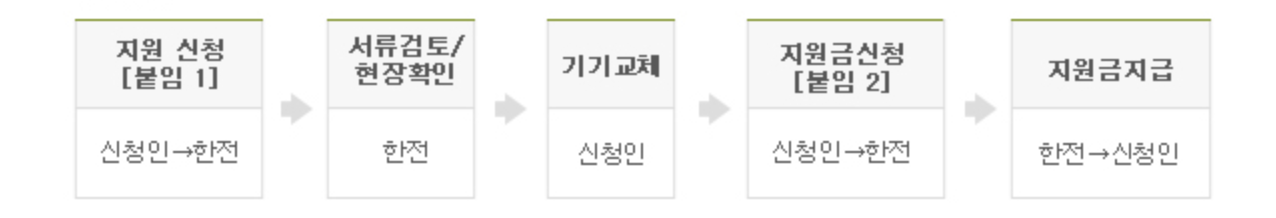 이후, 소상공인 냉난방기 지원 신청자가 기기를 교체해 지원금 신청을 하면 최종 확인 후 한전에서 지원금을 지급합니다. 단, 기기 교체 후에는 필요시 에너지 1등급 제품인지 현장 확인을 시행합니다.