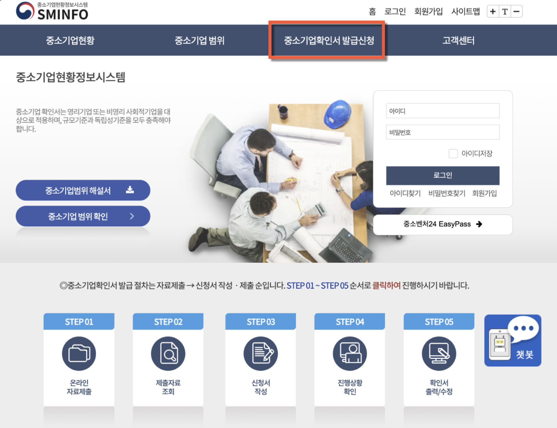- 중소기업확인서 ('중소기업현황정보시스템' 발급 가능)