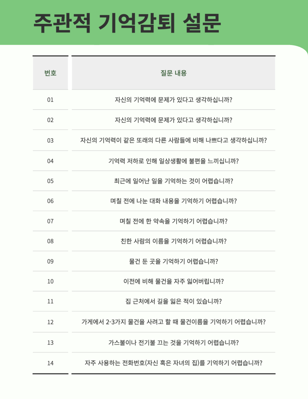 <치매 자가진단 테스트-주관적 기억감퇴 설문>