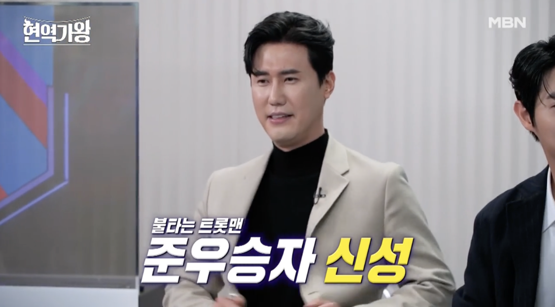 '트로트 한일전'에 나갈 현역 최고의 트로트가수를 뽑는 MBN의 새 예능 프로그램 현역가왕의 MC는 신동엽이 맡았습니다. 신동엽은 현역가왕을 통해 데뷔 33년만에 처음으로 오디션 프로그램의 MC를 맡게 되었습니다.