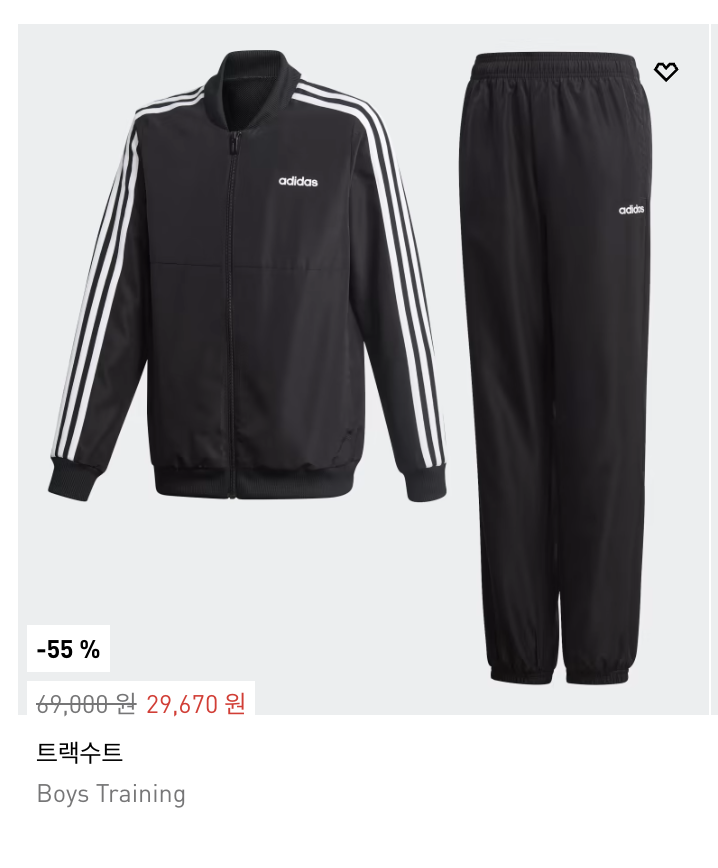 특히, 아디다스 의류 중 가장 베스트셀러인 트랙슈트도 할인 중입니다. 할인가에 블랙프라이데이 30% 할인쿠폰까지 사용 시 2만 원 초반대에 구입하실 수 있으니 얼른 확인해 보시길 바랍니다.