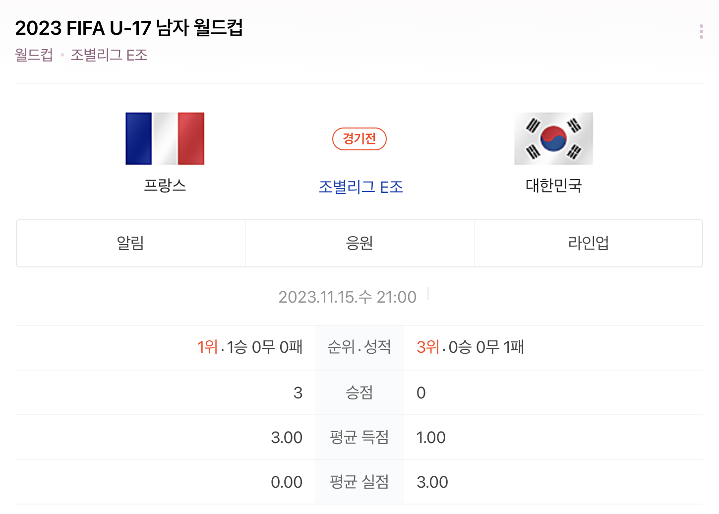 2023 U17 월드컵 대한민국 VS 프랑스 무료 중계