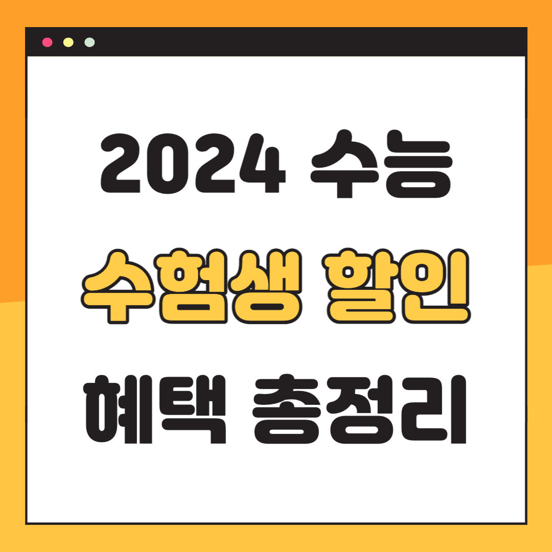 2024 수능을 준비하고 계신 수험생 여러분들! 지난 3년간 원하는 목표를 이루기 위해서 정말 수고많으셨습니다. 하고 싶은 거 다 참아가며 3년 동안 얼마나 고생이 많으셨어요? 수고하신 여러분들을 위해서 약 4개월동안 오직 2024 수능 수험생들만 누릴 수 있는 수험표 할인 혜택을 전부 알려드릴게요! 수능 수험생 특별 혜택 전부 확인하시고 그간 쌓였던 공부 스트레스와 불안감 전부 떨쳐버리세요!
